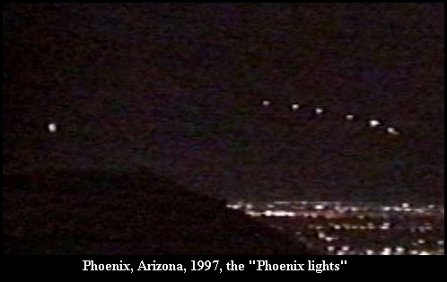 exopolitik.org hat geschrieben:Am 14. März 1997 wird über Phoenix, der Hauptstadt des US-Bundesstaates Arizona, ein UFO gesichtet. Das Objekt wird als "V-förmige, ungeheuer große fliegende Maschine" beschrieben, von tausenden Augenzeugen gesehen und live im regionalen TV-Sender KNXV-TV übertragen. Das Ereignis wird von der Medienwelt auf den Namen "Phoenix Lights" getauft.