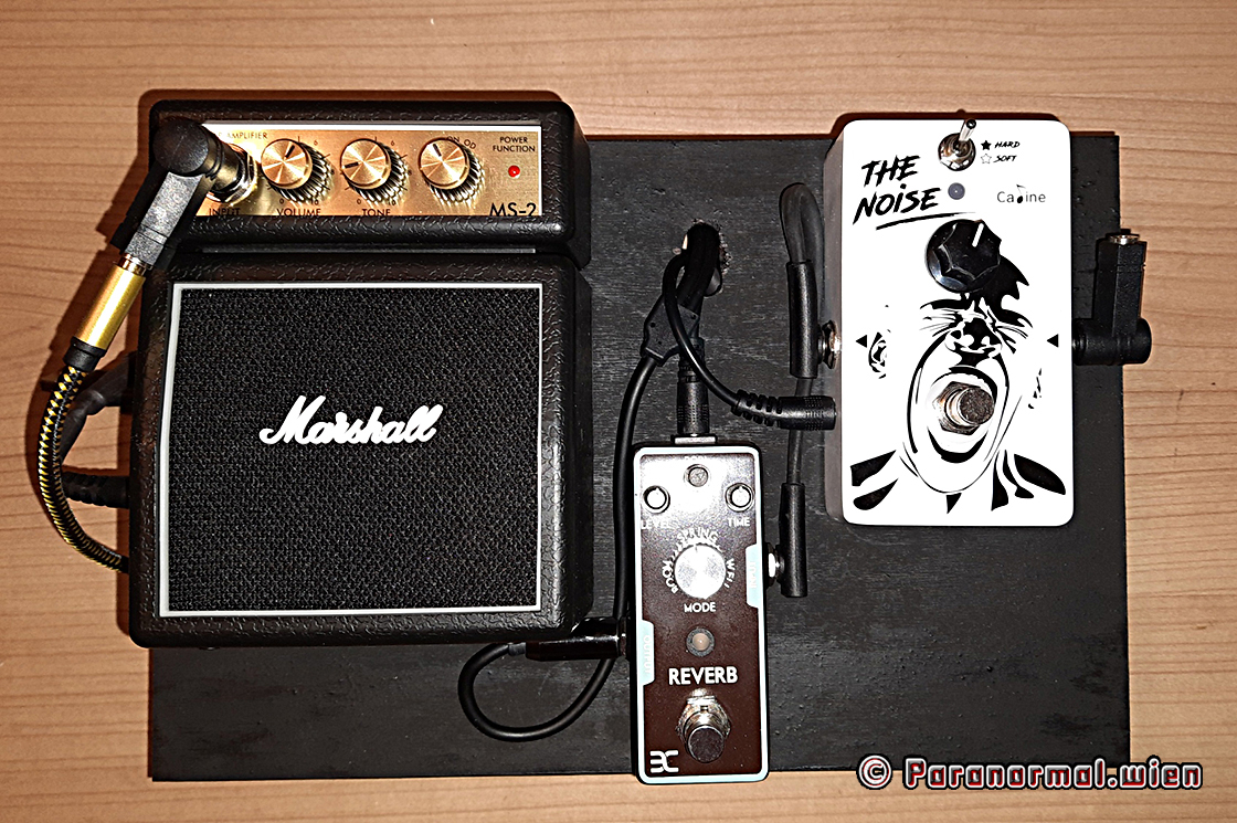 Aus einem mir nicht nachvollziehbaren Grund erzeugt sowohl das Noise Gate als auch der Reverb plötzlich ein hohes, extrem nerviges Pfeifen, was vorher (bei eigentlich gleichem Aufbau) nicht der Fall war. Ich habe etliche Möglichkeiten durchprobiert (verschiedene Kabel, Powerbanks, Konverter), aber nichts half. Dann erinnerte ich mich, dass ich noch einen alten Entstörfilter vom Plattenspieler zuhause habe - zwischen Reverb und Verstärker gehängt und siehe da: Ruhe ! Kein Pfeifen mehr ! Damit fand ein seltsamer Austausch statt: in der vorigen Version musste ich einen Vorverstärker dazwischenhängen, der jetzt wegfällt. Dafür hängt jetzt der Entstörfilter drin ... und beides hatte ich bereits gemeinsam vor Ewigkeiten mit meinem Plattenspieler verwendet.