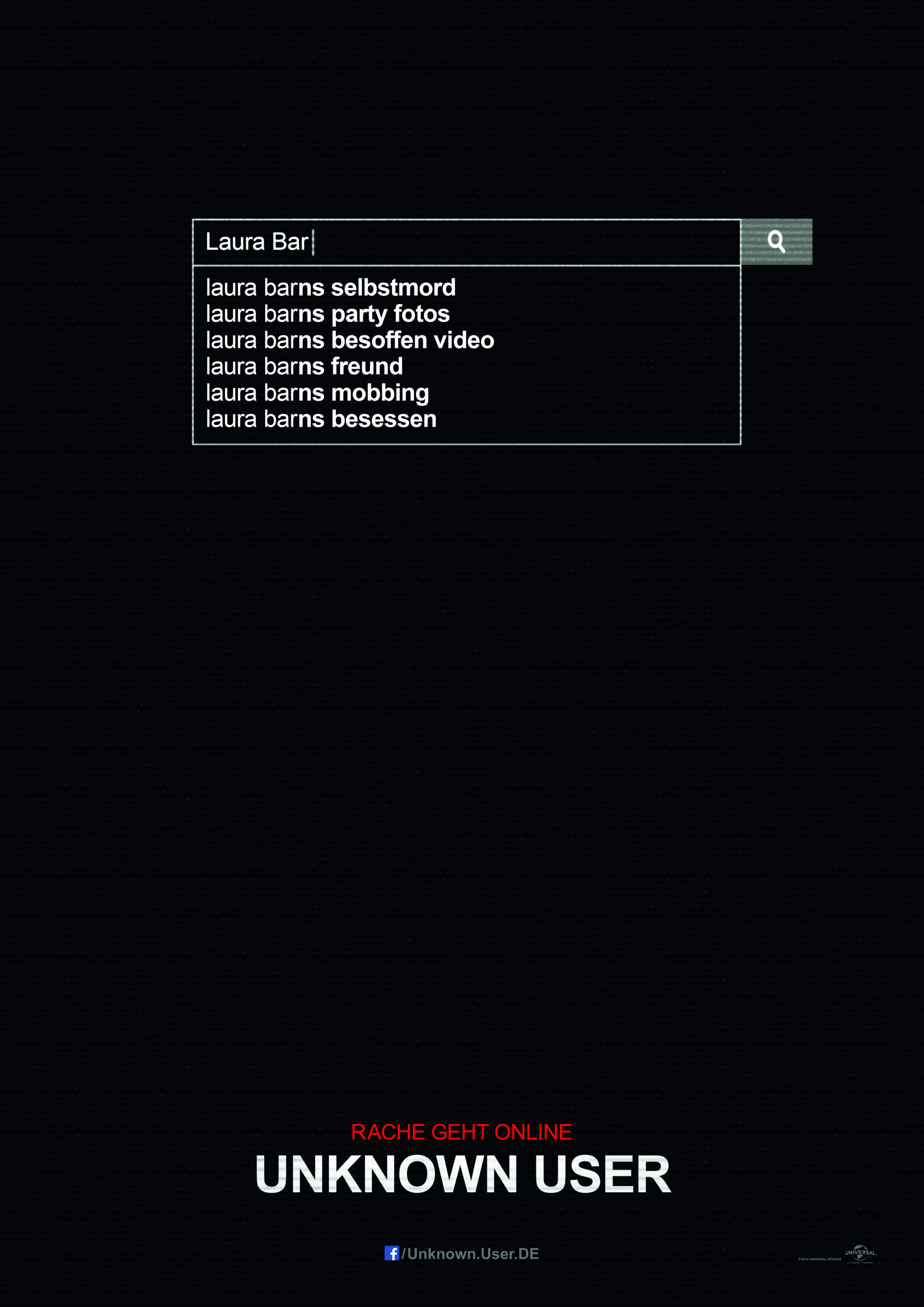 https://www.youtube.com/watch?v=ER6FiUI2wY0 https://www.youtube.com/watch?v=rbHVfD-KQyA Offizielle Webseiteofdb.de hat geschrieben:Das Internet vergißt nicht! Als Laura Barns (Heather Sossaman) auf einer Party unter Alkoholeinfluß in wenig schmeichelhaftem Zustand gefilmt wird, gelangt der kurze Streifen alsbald zu Youtube - und dort wird sie zum Ziel hämischer Kommentare. Laura begeht in der Folge Selbstmord. Genau ein Jahr später sind sechs ihrer Mitschüler gerade bei einem Gruppenskype-Gespräch, als sich ein unbekannter User einloggt und Auskunft verlangt, wer für den Upload vor einem Jahr verantwortlich war. Die Anfrage ist mit einer Todesdrohung verbunden und schon bald geschehen unheimliche Dinge rund um die sechs Teilnehmer, noch während der Chat läuft...