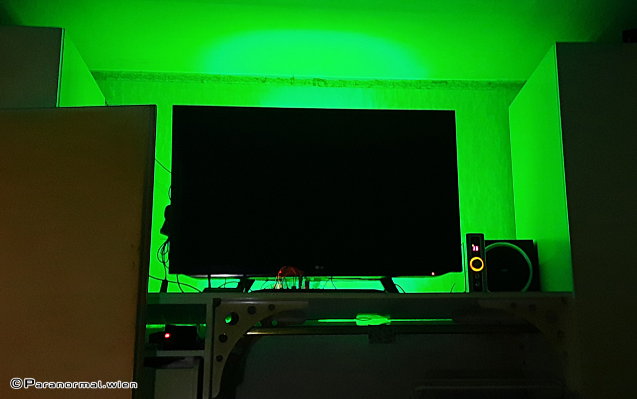 Also alles wieder auf Start und alles neu gebaut. Und neu ist auch die TV-Hintergrundbeleuchtung (ein- und ausschalten sowie Helligkeit und 3 Farben über die Fernbedienung steuerbar). Hinzugekommen ist auch eine LED-Anzeige wenn jemand an der Tür läutet. Die Anzeige, falls das Smartphone nur mehr 8% Akku hat, hat jetzt eine eigene LED.
